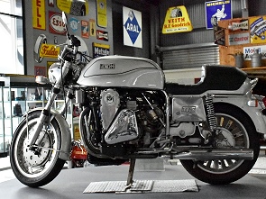 Auf der Galerie oben kann man die "Race Bike Collection" bewundern. In diesem Teil der Ausstellung hat eine Gruppe von Motorradsport-Fans eine Sammlung von Rennmaschinen zusammengestellt, auf Initiative von Frotz Rau, der in den 1970er Jahren selbst als Rennfahrer aktiv war. Seit Ende der 60er Jahre entwickelten sich Motorräder vom regulären Fortbewegungsmittel zum Freizeitfahrzeug und als Ausdruck eines besonderen Lebensgefühls. Hier im Technik Museum Speyer können zahlreiche historische, darunter auch einige kuriose Motorräder bestaunt werden, hier auf der Galerie liegt der Schwerpunkt auf der jüngeren Rennsport-Historie.
