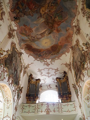 Von außen ist diese Kirche eher unscheinbar. Aber die Ausstattung ist prächtig und man wird hier nach dem Eintritt förmlich von Details erschlagen und weiß erstmal gar nicht, wo man zuerst hinschauen soll. Putten und Verzierungen sind ja Geschmacksache, aber auch wenn uns eher die schlichteren Kirchen gefallen sind Architektur und Ausschmückung hier doch künstlerisch wertvoll und durchaus beeindruckend.
