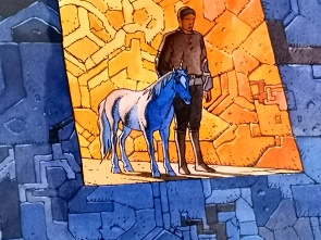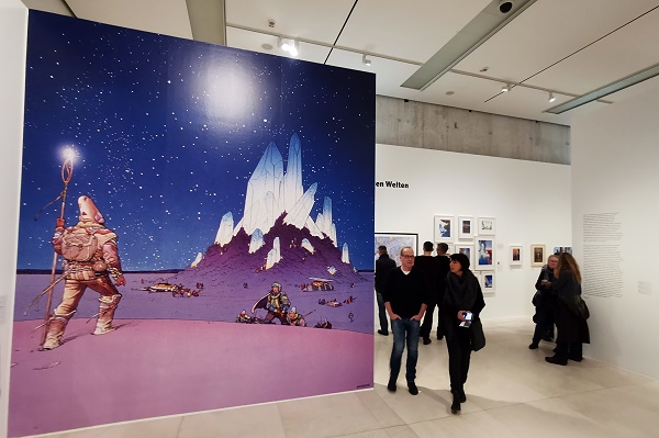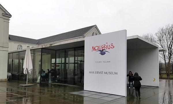 Vom 15. September 2019 bis 13. März 2020 fand hier im Max Ernst Museum eine Sonderausstellung statt, die uns wieder einmal nach Brühl lockte. Diese Sonderausstellung zeigte Werke von Jean Henri Gaston Giraud, geboren am 8. Mai 1938 in Nogent-sur-Marne nahe Paris; verstorben am 10. März 2012 in Paris. Er ist besser bekannt unter dem Pseudonym "Moebius". Dieser bedeutende Comiczeichner hat den frankobelgischen Comic sehr stark beeinflusst. Seinen klassischen Western-Comic Leutnant Blueberry unterzeichnete er mit Gir. Ausserdem schuf er als Moebius Comics, die der fantastischen Literatur zuzuordnen sind und die eine ganz eigene Faszination ausüben.