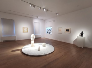 Die Präsentation hier im Museum umfasst rund siebzig Schaffensjahre von Max Ernst: seine dadaistischen Aktivitäten im Rheinland, die Beteiligung an der surrealistischen Bewegung in Frankreich, sein Exil in den USA und schließlich die Rückkehr nach Europa im Jahr 1953. Ein Highlight der Ausstellung sind die 36 D-paintings, Geburtstags- und Liebesgeschenke von Max Ernst an seine Frau Dorothea Tanning. Mit ihr war er über drei Jahrzehnte lang verbunden.