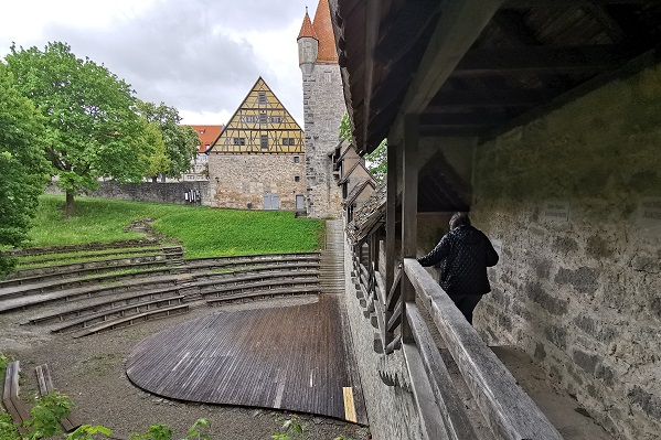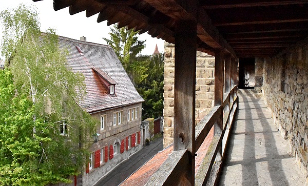Insgesamt waren sehr wenige Besucher unterwegs, teilweise hatten wir die Mauerabschnitte für uns alleine und konnten in Ruhe fotografieren. Der Weg eröffnet immer wieder neue Perspektiven auf die Altstadt von Rothenburg. Hübsch ist auch der Ausblick auf die Gerlachschmiede mit ihrem spitzen Giebel. Wir sind hier an verschiedenen Tagen mehrmals Teilabschnitte gelaufen, vor allem bei Regen.