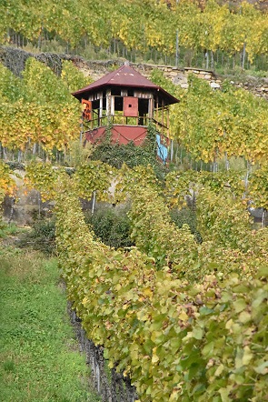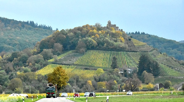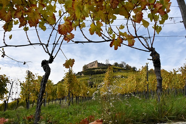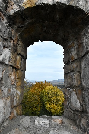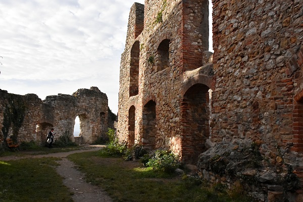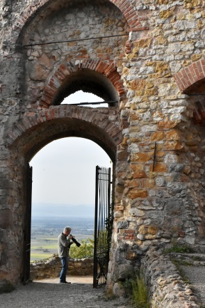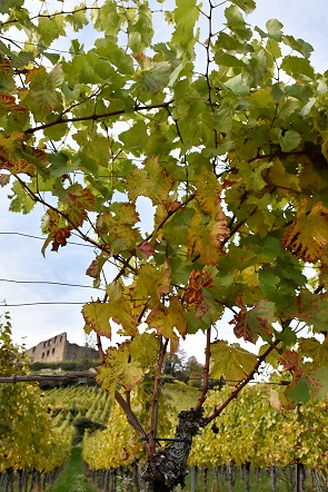 Der Weg hinauf führt eine gute halbe Stunde über einen geteerten Weg durch die Weinberge, deren Rebstöcke bei unserem Besuch im Herbst goldene Blätter trugen. Unterwegs hat man schöne Ausblicke auf den Ort. Die Burgruine hat keine Funktion, hier gibt es weder Restaurant noch Kisosk, sie ist das ganze Jahr frei zugänglich. Die Besichtigung der mittelalterlichen Anlage ist kostenlos.