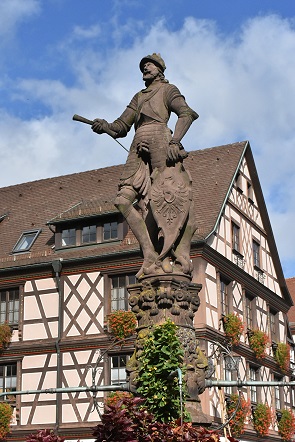 Gengenbach hat neben seinem romantischen Ortskern auch eine gute Restaurantszene und ein anregendes Nachtleben. Leider war davon in Corona-Zeiten wenig zu spüren, auch die Museen hatten geschlossen. Als wir ankamen wurden gerade die Marktstände abgebaut, mitten auf dem Platz steht der Röhrbrunnen. Fast schon 500 Jahre stützt sich der Ritter auf sein Schild mit dem Stadtwappen.