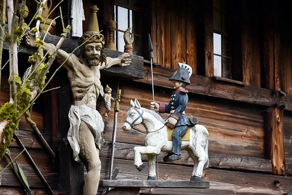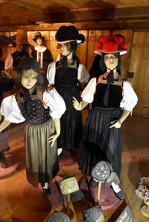 Weniger schön fanden wir die alte bäuerliche Kunst, die sehr religiös geprägt ist. Das Schauinslandhaus ist das einzige Gebäude im Museum, in das man von der Schmalseite eintritt. Im Dachboden des Schauinslandhauses befindet sich die Dauerausstellung "Der Bauer und der liebe Gott". Sie widmet sich in einer symbolreichen Inszenierung den Themen Volksfrömmigkeit sowie Leben und Sterben auf dem Land. Christuskindchen im reich bestickten Bettchen oder Bilder mit Heiligen findet man hier ebenso wie die Darstellung einer Bauernfamilie beim Nachtgebet.