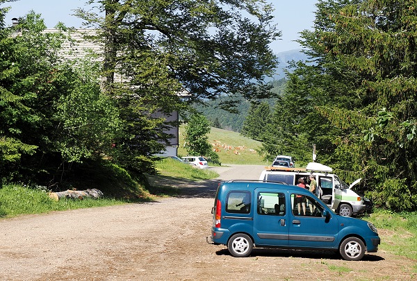 Direkt hinter dem Gasthof, in dem man ganzjährig Übernachten und von Donnerstag bis Sonntag Einkehren kann, befindet sich ein Wanderparkplatz. Hier haben wir geparkt und sind dann zu Fuß durch den Wald und vorbei an riesigen Ameisenhaufen und blühenden Sommerwiesen gelaufen.