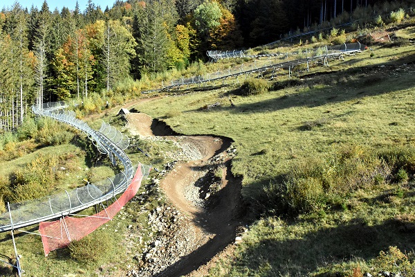 Man kann aber auch sein Rad damit transportieren und sich dann über die Mountainbike-Pisten im Sattel wieder den Berg herunter stürzen. Es gibt mehrere Strecken: Die östliche ist die 2,7 km lange Downhill-Strecke und die westliche die 3 km lange Wildride-Strecke. Beide beginnen und enden an den selben Stellen und weisen etwa 450 m Höhenunterschied auf. Bikes und Protektoren kann man mieten, eine Punktekarte vergünstigt die Seilbahnfahrt.