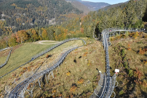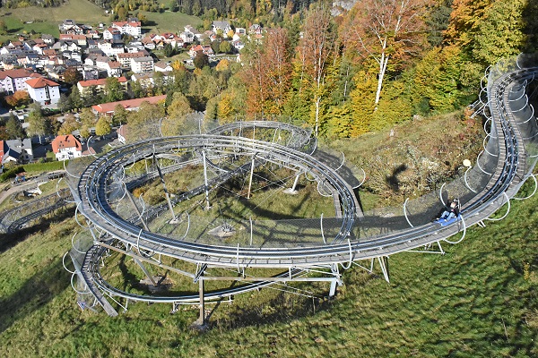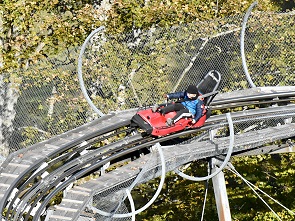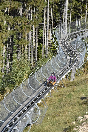 Laut eigenen Angaben die spektakulärste Sommerrodelbahn Deutschlands liegt hier am Hasenhorn. Auf schienengeführten Schlitten kann man die 2,9 km lange Strecke hinab ins Tal fahren, das Tempo bestimmt man dabei selbst. Man darf nur nicht auf den vor einem fahrenden Schlitten auffahren. Die rund 80 kg schweren Schlitten sind fest mit den Edelstahlschienen verbunden, ein Herausfallen ist also nicht möglich. Unterwegs gibt es Wellen, steile Kurven und drei tolle Kreisel.