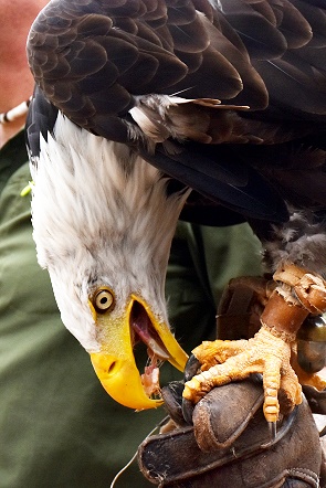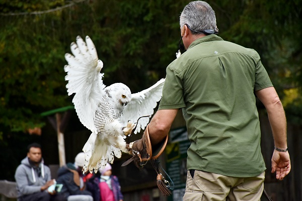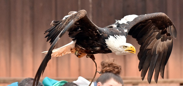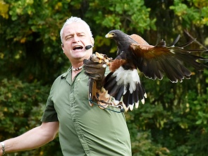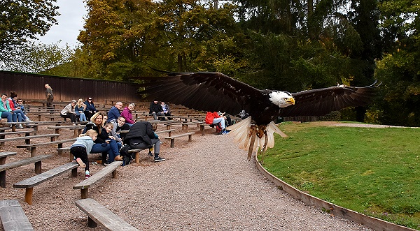 1999 kam in der Nähe des Einganges die Arena der Falknerei mit etwa 600 Sitzplätzen hinzu. Die Greifvogelshow findet hier 2x täglich statt und ist durchaus sehenswert, den die Falkner haben mit Dialekt viel zu berichten. Die Vorführung ist ziemlich kurzweilig und wird mit Witz und viel tollen Infos abgehalten, die Vögel fliegen sehr oft direkt über den Köpfen der Zuschauer. Dabei kann man auch prima fotografieren, vor allem wenn es nicht ganz so voll ist und man Platz rundum hat. Wir hatten da wohl die optimale Zeit erwischt, im Sommer bei voller Besetztung sieht das sicher ein bisschen anders aus.