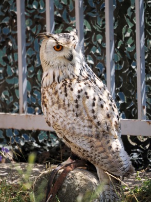 Die Tiere sassen in der Gluthitze wenigstens beschattet auf ihren Stangen und taten uns leid, denn gegen Geld konnte jeder sie auf den Arm nehmen und sich damit fotografieren lassen. Einige zahlenden Gäste konnten es nicht lassen, die Vögel auch zu streicheln. Auch hier waren wir dann ganz schnell wieder weg und machten uns auf den Rückweg zum Auto.