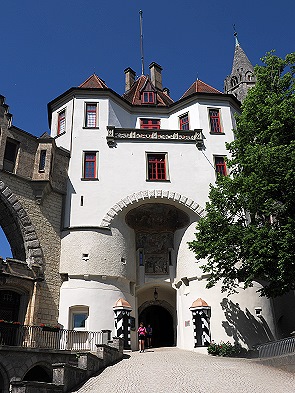Das Hohenzollernschloss Sigmaringen steht auf einer Erhebung von Massenkalk mitten im Städtchen Sigmaringen, dem ich eine eigene Seite gewidmet habe. Nachdem wir durch die Altstadt gelaufen waren und uns dort mit einem leckeren Eis erfrischt hatten kamen wir zum Haupteigang am Schloss. Da wir von unserem Hotel leider keine Albcard bekommen hatten, zahlten wir hier 14,00 Euro Eintritt pro Person. Das Schloss kann jederzeit mit einem Audioguide selbständig besichtigt werden. Wer möchte, der kann auch an einer Führung teilnehmen die um 10:00 Uhr, 12:00 Uhr, 14:00 Uhr und 16:00 Uhr stattfindet.