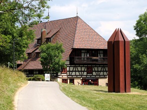 Oben ein Stück unterhalb des Gipfels befindet sich in Alleinlage das Hotel Hofgut Hohenkarpfen mit Restaurant, in dem wir eine Nacht verbracht haben. Bekannt ist auch die Kunststiftung Hohenkarpfen mit ihrem Museum. In der umliegenden Landschaft stehen einige Kunstwerke von namhaften zeitgenössische Künstlerinnen und Künstlern im Freien herum.
