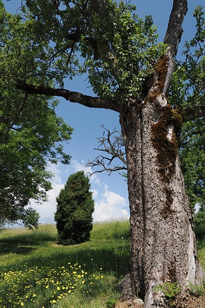 Dafür gibt es hier eine reichhaltige Natur zu sehen. Leider waren wir etwas zu spät vor Ort, denn die Wiesen rund um das Hofgut waren gerade gemäht und die Maht war noch voll im Gange. Schöner ist es sicher einige Wochen eher im Mai, wenn die bunten Wiesen noch blühen.