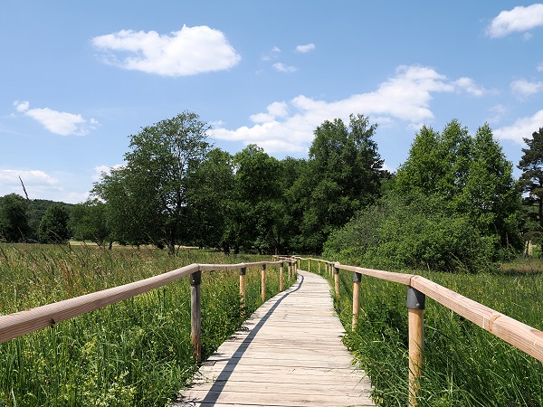 Leider hatte es im Juni 2023 bei unserem Besuch schon lange nicht mehr geregnet und selbst hier waren jetzt das Gras und die einzige Wasserfläche schon ziemlich ausgetrocknet.