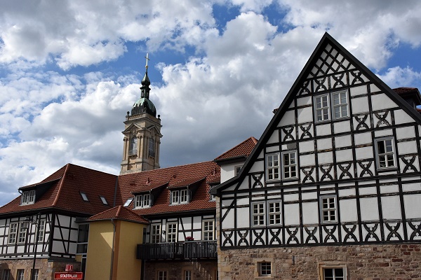 Die Altstadt von Eisenach kann man sehr gut zu Fuß erkunden, es gibt einige hübsche Häuser mit üppigen Verzierungen zu sehen. Die um 1180 erbaute Georgenkirche liegt beherrschend im Zentrum, sie gilt als Traukirche der Heiligen Elisabeth und ist die Taufkirche von Johann Sebastian Bach. In ihr musizierten über 132 Jahre Mitglieder seiner Familie auf der Orgelbank. Das Wartburgfest der Burschenschaften 1817 ging ebenso von hier aus, wie die Friedensgebete 1989. Ein Gotteshaus, das mit der Entwicklung und der bewegten Geschichte der Stadt Eisenach eng verbunden ist.