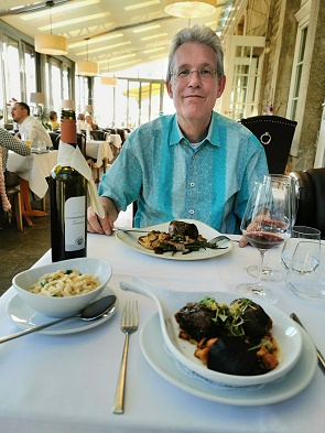 Alles wird hier frisch zubereitet, auch das hauseigene Sorbet war klasse. Sehr gut zum Essen war auch der Rotwein namens "Glockendreiklang" aus der Saale-Unstrut Region vom Weingut Beyer aus Dorndorf, den wir im Verlauf der Reise nirgendwo mehr bekommen konnten.