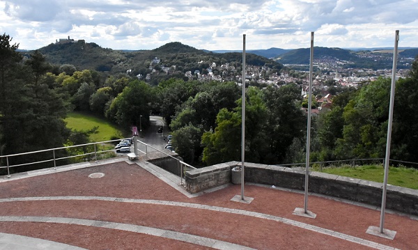 In der Umgebung des Hotel führen Wanderwege zu den Attraktionen in Eisenach, teilweise geht es steil bergab. Wir blieben am Abend auf der Göpelskuppe, die ihren Namen im 19. Jahrhundert nach dem damaligen Grundbesitzer erhielt. Das stadtnahe, seit dem Mittelalter entwaldete Gebiet wurde landwirtschaftlich genutzt. Das erste Bild im oberen Bildabschnitt zeigt den Blick von der Wartburg rüber auf das Burschenschaftsdenkmal und das Berghotel mit einem kleinen Teil der darunter liegenden Villen.