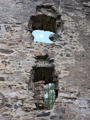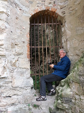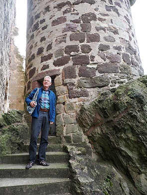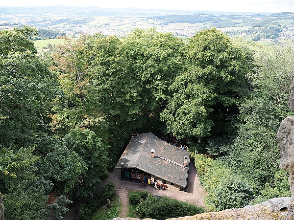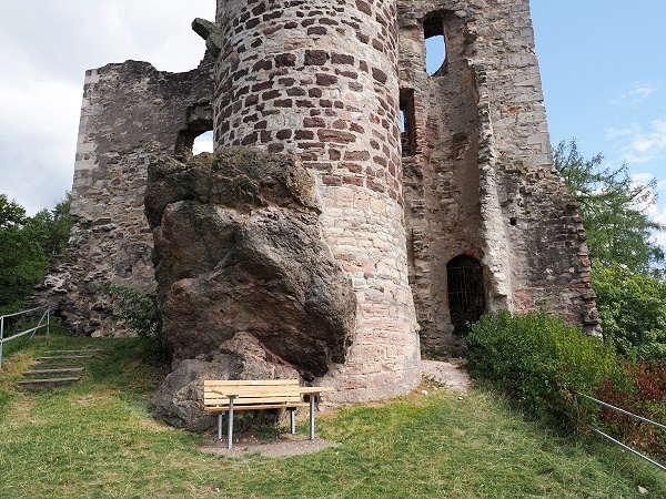 Auch der hübsche Bergfried mit Fachwerk und Dach steht noch, kann aber nur betreten werden, wenn man sich vorher den Schlüssel an der Touristen-Information im Ort abholt und einen Euro Eintritt zahlt.