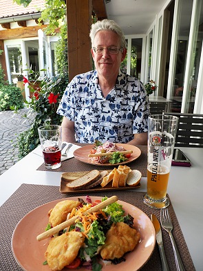 Kulinarisch hat Wissembourg sicher einiges zu bieten, wir haben hier aber leider kein einziges Restaurant besucht. Am ersten Abend waren wir noch satt vom Schnitzelessen im Restaurant Pfalzblick oberhalb von Deidesheim, wo wir auf dem Hinweg eine Pause mit schöner Aussicht im Biergarten machten. Eines der Schnitzel schafften wir nicht und nahmen es für ein Picknick am nächsten Tag mit.