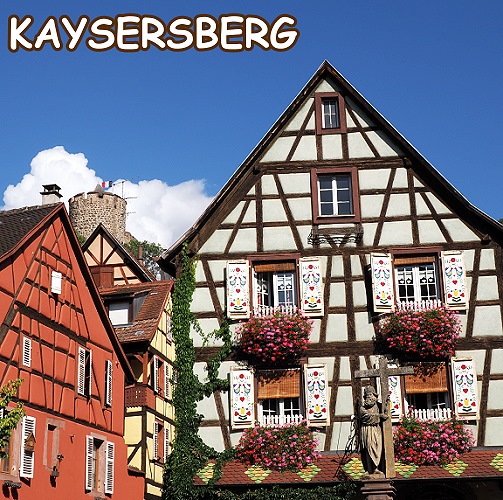 Im Tal der Weiss gelegen, wird dieser Ort von den Vogesen malerisch umrahmt. Eine einst prächtige staufische Burg wacht heute als Ruine Château du Schlossberg hoch über Kaysersberg und seine von Fachwerk gesäumten Gässchen, Weinstuben und Brasserien ziehen natürlich zahlreiche Besucher an.