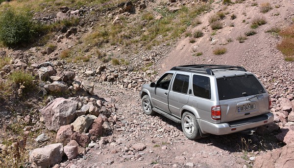 Auf jeden Fall überzeugt haben die Allradeigenschaften des Pathfinder. Zuschaltbarer Allradantrieb, Automatik, Wahlweise Untersetzung und Sperren - alles drin und zuverlässig. Steile Geröll-Zufahrten zu Sehenswürdigkeiten wie die Kirche Gergetis Sameba hoch über Stepanzminda, die ansonsten eigentlich nur von den lokalen 4WD-Taxis bewältigt werden, schaffte Michael dank einiger Erfahrung damit routiniert und sicher.