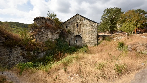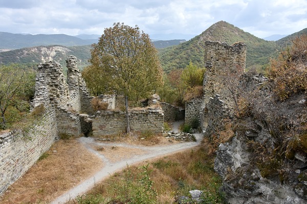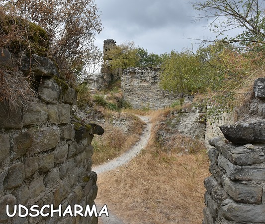 Kurz hinter dem Dorf befindet sich die Festung Udscharma, auf Englisch Ujarma geschrieben. Sie ist hinter einer engen Kurve von der Straße aus nicht zu übersehen. Früher kamen Touristen nicht so einfach hierher, denn diese gut ausgebaute Straße gibt es erst seit dem Jahr 2010.