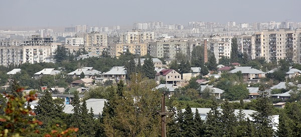 Am Morgen machten wir uns in Bolnisi auf den Weg in Richtung Telavi. Der anstrengenste Teil der Fahrt führt durch den dichten Verkehr zwischen Tbilisi und Rustavi. Unten auf dem ersten Foto sind die Plattenbauten der Vorstädte in der Eben zu sehen.