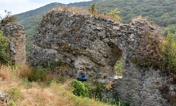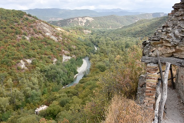 Das Gelände hat man relativ schnell erkundet, von hier oben schaut man runter auf die Straße und auf den Fluss. Zwischen den Spalten der alten Festungsmauer huschen überall flinke kleine Echsen, die wir fotografieren konnten. Im östlichen Teil der Zitadelle befand sich ein königlicher Palast, der aus einem zweistöckigen Gebäude bestand. Im Zentrum sieht man Überreste von Wasserspeichern. Beim Herumstreifen muß man achtgeben, stellenweise ist die Decke zu den Kellergewölben eingebrochen und es geht hinter einer Türschwelle ohne Absperrung auf einmal drei Meter abwärts.