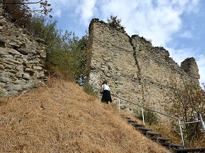 Heute bietet der Ort nicht viel von einem alten Festungserlebnis. Es gibt nur noch ein paar übrig gebliebene hohe Mauern und Türme, doch die liegen sehr malerisch hoch über dem Flusstal. Von der einstigen großen Mauer, die ein größeres Dorfgelände bis fast hinunter zum Fluß umschloss, ist von oben nur noch eine Turmruine im Wald zu sehen.