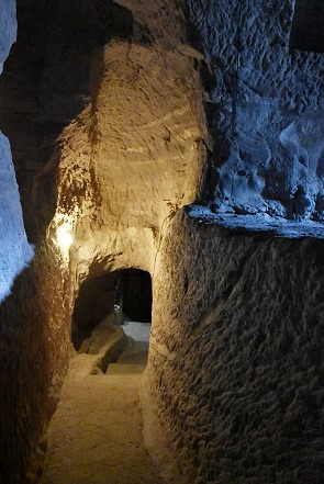 Viele der heute noch vorhandenen 750 Räume kann man erkunden. Die unteren Räume und Säle waren früher nur über Leitern zu erreichen, die bei einem Angriff eingezogen wurden. Es gibt auch begehbare Gänge tiefer im Inneren, die man aber teilweise als einzelner Besucher nur findet, wenn gerade eine ganze Reisegruppe mit Führer in einem Loch am Ende einer Höhle verschwinden sieht. Danach einfach eine Weile warten und folgen. Wir waren sehr erstaunt, wie viele ältere Besucher, die auf ebenen Flächen Schwierigkleiten mit dem Gehen hatten, hier mutig in den engen Gängen verschwanden.