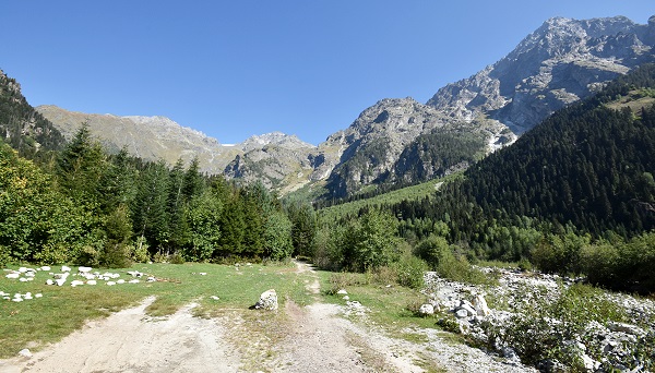 Der beliebteste Wanderweg in der Region führt vom Grand Hotel Ushba aus zum Ushba Gletscher. Uns beiden war schon klar, dass diese Tour für uns zu anstrengend ist, dazu waren wir einfach nicht fit genug. Vor allem hatte ich gerade einen tagelangen Durchfall überstanden und konnte am Abend zuvor zum ersten Mal wieder richtig beim Essen zulangen. Trotzdem fühlte ich mich noch ein bisschen geschwächt.
