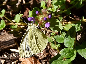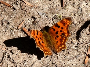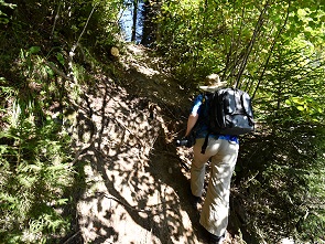 Wir setzen schon ein wenig außer Atem den steinigen Aufstieg fort, es ging durch eine Art Hohlweg durch den Wald. Am Wegrand sassen Falter auf einigen Blüten.