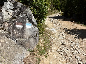 Nun geht man am linken Ufer des Dolra entlang, der Weg führt durch einen mit Nadelbäumen durchmischten Birkenwald.