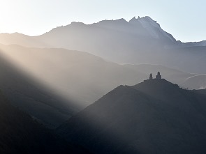 Das Rooms Hotel Kazbegi erreicht man über die Georgische Heerstraße, dem historischen Weg durch die wilde Landschaft. Die 2-3 Stunden Anfahrt ab Tbilisi lohnt sich schon um ihrer selbst willen und für nur einen Tag ohne Übernachtung hierher zu kommen ist die Umgebung viel zu schön. Im Winter sollte man auf jeden Fall vor der Abfahrt in die Berge checken, ob die Passstraße frei ist.