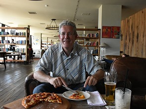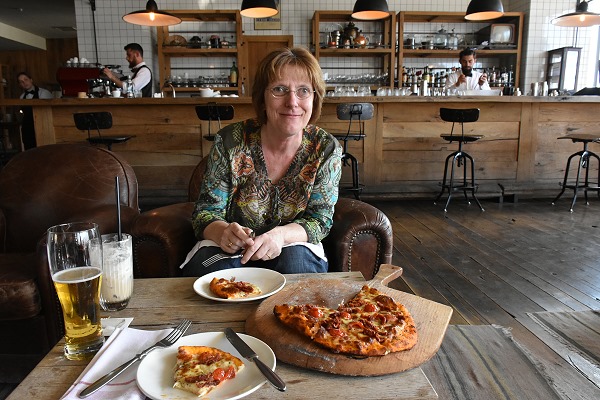 Im Ort gibt es ein paar kleinere Restaurants mit typisch georgischer Küche, aber viel Auswahl hat man dort nicht. Als wir am Nachmittag im Rooms ankamen, war der Hunger groß. Daher setzten wir uns in den Barbereich der Lounge und bestellten uns von der übersichtlichen Karte eine Pizza, die wir uns teilten, sowie Kaffee und ein Bier.