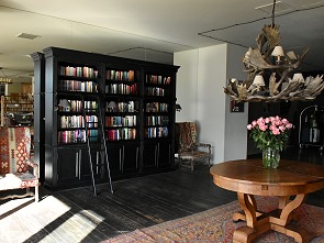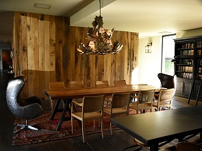 Auf der linken Seite vom Eingang zum Speiseram gibt es gegenüber der Bar noch drei größere Tische aus Holz, an denen man rundum auf exotischen Stühlen Platz nehmen kann. Zweiertische gibt es hier gar nicht, die Gäste sitzen zusammen an langen Tafeln.