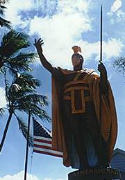 Ein in Italien lebender amerikanischer Bildhauer bekam von Kamehameha den Auftrag für die Statue. Sie wurde in Paris gegossen und per Schiff verschickt, das vor den Falklandinseln sank. Der Bildhauer fertigte eine neue an, die steht jetzt in Honolulu. Das verloren geglaubte Exemplar wurde allerdings aus dem Südatlantik geborgen und hier in der Heimatregion des Regenten aufgestellt.