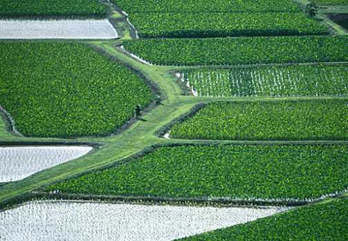 Zwischen Oktober und Dezember kann man Schwärme von mehren hundert Tieren sehen. Unten sind einige Teleaufnahmen der Tarofelder, das Grün ist faszinierend leuchtend und die Wege zwischen den Feldern waren noch vom morgendlichen Regenguss von Pfützen übersät.