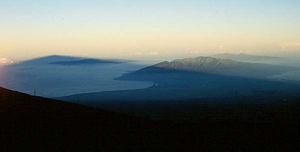 Schattenspiele der besonderen Art. Der Haleakala wirft seinen Schatten so nur im Sommer auf die Zentralebene von Maui und auf die Nachbarinsel Lanai und Molokai.