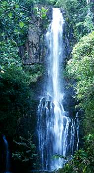 Die schönsten Wasserfälle findet man 11 Km hinter Hana, auf dem Weg in Richtung Oheo Gulch. Die Wasserfälle Wailua und Kanahualili sind wunderschön. Besonders der 30 m hohe Wailua Fall. Hier gibt es auch ausreichende Parkmöglichkeiten. Am Parkplatz sitzen meist Einheimische, die geflochtene Hüte und Körbe verkaufen. Hier an den Wailua Falls wurden Szenen für dem Film "Meuterei auf der Bounty" gedreht.