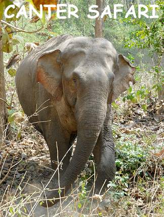 Die indische Gruppe stieg am Gate wieder aus, uns erwartete noch die windige und extrem unbequeme Rückfahrt zum Hauptquartier, wo unser Fahrer wartete. Und unterwegs sahen wir ihn: unseren ersten, wilden Corbett-Elefanten. Direkt am Straßenrand, in der Nähe einer Siedlung. Er guckte kurz auf den Verkehr, stellte sich für ein Foto in Pose und verschwand im Wald, auf dem ersten Bild ist er zu sehen. Auch die indische Familie vor uns war begeistert, obwohl sie aus Südindien stammte wo es sicherlich auch wilde Elefanten gibt.