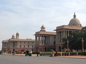 Auch die Verwaltungsgebäude in der unmittelbaren Nachbarschaft sind eine interessante Mischung aus Mogul-und Kolonialstil. Hier findet man barocke Kuppeln ebenso wie Flachreliefs mit Lotusdarstellungen und Elefantenmotiven. Im Inneren befinden sich das Innenministerium, das Außenministerium und das Finanzministerium.
