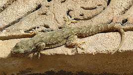 In den Löchern und Ritzen der Ruine haben sich Halsbandsittiche niedergelassen und ihr heiseres Krächzen macht auf die Nester im alten Gemäuer aufmerksam. Auf dem Gelände springen auch die munteren Streifemhörnchen herum und wir entdeckten in den Ritzen einer Mauer sogar einen dicken Gekko. Allgegenwärtig sind auch hier die Tauben.