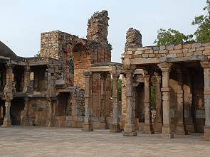 Die Quwwat-ul-Islam Moschee wurde von Qutb-ud-din Aybak erbaut, dem ersten Sultan von Delhi. Der Bau begann im Jahr 1190 und man sagt, zu ihrem Bau wurden Teile von zerstörten Hindu- und Jaintempeln verwendet. Heute ist die Moschee leider nur noch eine Ruine, aber man sieht noch stehende Bögen mit reichen Verzierungen, wie wir sie auch am Jain-Tempel von Ranakpur gesehen haben. Es gibt zahlreiche florale Ornamente und geometrische Reliefs. An der Westseite befindet sich ein kleines Mausoleum.