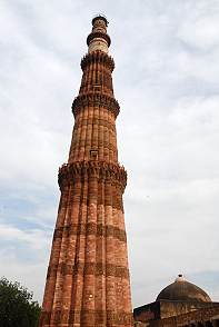 Der Qutab Minar selbst ist eine erhabene, riesige Siegessäule. Mit dem Bau wurde sofort nach Unterwerfung des letzten Hindu-Königreiches von Delhi im Jahr 1193 begonnen. Andere Quellen besagen auch, er wäre als ein riesiges Minarett erbaut worden, um die Gläubigen in die benachbarte Quwwat-ul-Islam Moschee zu rufen. Selbst bei dem Namen streiten sich Gelehrten, nach wem der Turm benannt wurde: nach dem ersten türkischen Sultan Qutb-ud-din Aibak oder nach einem heiligen Mann aus Bagdad namens Khwaja Qutb-ud-din Bakhtiar Kaki, der in Indien unter Akbar gelebt hat.