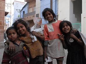 Hat man das Fateh Tor passiert, steht man nach wenigen Metern Vorplatz unmittelbar in den engen Gassen der Altstadt. Um zum Markt und zum Uhrturm im Zentrum zu kommen, läuft man einfach immer bergab und biegt irgendwann einmal nach links ab. Verlaufen kann man sich nicht, sollte aber auf den Hauptwegen bleiben. Die ganz engen Gassen sind Privat, die Bewohner sehen es nicht gerne wenn jemand durch ihren Hof läuft. Aber auch die Hauptgassen sind eng. Ein paar sehr schmutzige Kinder posierten direkt hinter dem Tor für ein Foto, dann wurden wir nicht weiter beachtet und konnten in Ruhe die Atmosphäre der Stadt genießen.