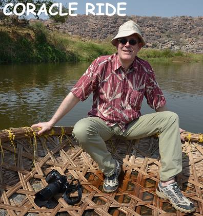 Ausgerüstet mit Kamera, Kopfbedeckung und Wasser stiegen wir dann in eines der einfach konstruierten Boote, die man hier Coracle nennt. In der örtlichen Sprache Kannada nennt man sie Teppa oder Harigolu. Es handelt sich dabei um ein Korbgeflecht mit einer meist kreisrunden Form. Der Bootsköper ist mit Haut oder einer Persenning bezogen und mit Teer bestrichen, das Ganze sieht aus wie ein schwimmender Wok.