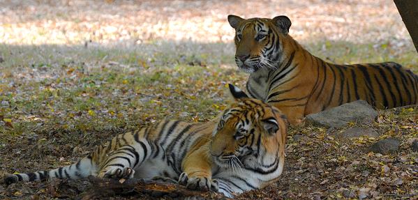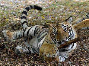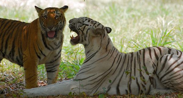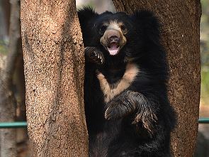 Einige hatten wir schon in freier Wildbahn gesehen, aber hier kam man natürlich näher heran. Die Lippenbären hatten wir in Hampi ja nur aus der Ferne gesehen, hier konnten wir sie besser ablichten und in Ruhe beobachten. Eine besondere Attraktion waren die Tiger. Unten auf dem Video ist die weiße Tigerin namens Manya zu sehen, sie hatte zwei gelbe Jungtiere, die miteinander im Schatten spielten.