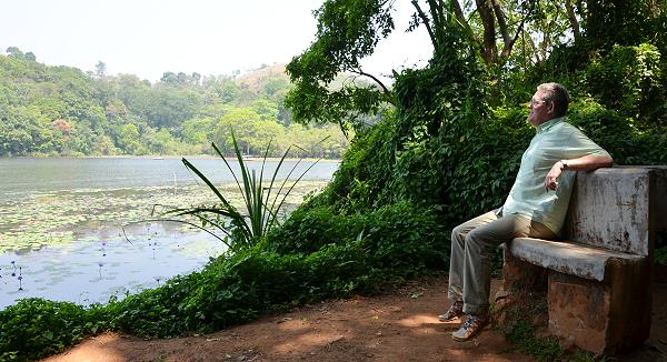 So beschlossen wir spontan, einen Spaziergang am See zu machen, der drei Kilometer südlich von Vythiri liegt. Eine Straße mit großem Baumbestand führt zum See, im Schatten lag gegenüber dem Eingang - Wie bitte, See mit Eingang? - gab es einen Parkstreifen. Babu hatte Glück, es fuhr gerade jemand weg und er konnte schnell in die Lücke fahren.
