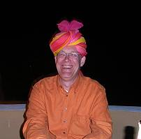Gegen 20:30 Uhr fuhren wir dann mit dem Jeep zurück zum Hotel, zusammen mit dem Koch, der extra für uns hierher gefahren wurde. Michael hatte immer noch den Turban auf dem Kopf, den wollten sie am Fort gar nicht haben. Also fuhren wir damit tapfer durch den Ort. Erst an der Rezeption wurden wir die Dekoration wieder los.