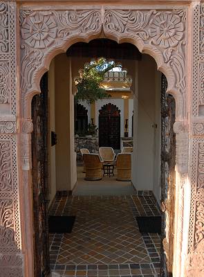 Auch sonst wurde bei der Einrichtung an nichts gespart und die Suiten erstrecken sich zum Teil über mehrere Ebenen. Es gibt klassische Rajasthani Möbel, handgearbeitete Stoffe und einen Balkon. Natürlich gibt es für den Sommer eine Klimaanlage im Winter eine Heizung. Internetanschluss und ein 29 Zoll Satellitenfernseher mit DVD-Player sind ebenfalls im Gebäude vorhanden.